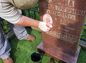 Уборка травы и мытье памятника